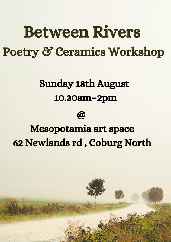 Join us for Between Rivers, a poetry and ceramics workshop facilitated by Lou Smith from Writing Days and ceramicist Elnaz Nourizadeh curator of Mesopotamia Arts Space. The name Mesopotamia comes from the Greek word meaning ‘between rivers’, and Mesopotamia Arts Space is located near the confluence of Merri Creek and Edgars Creek, Coburg North.